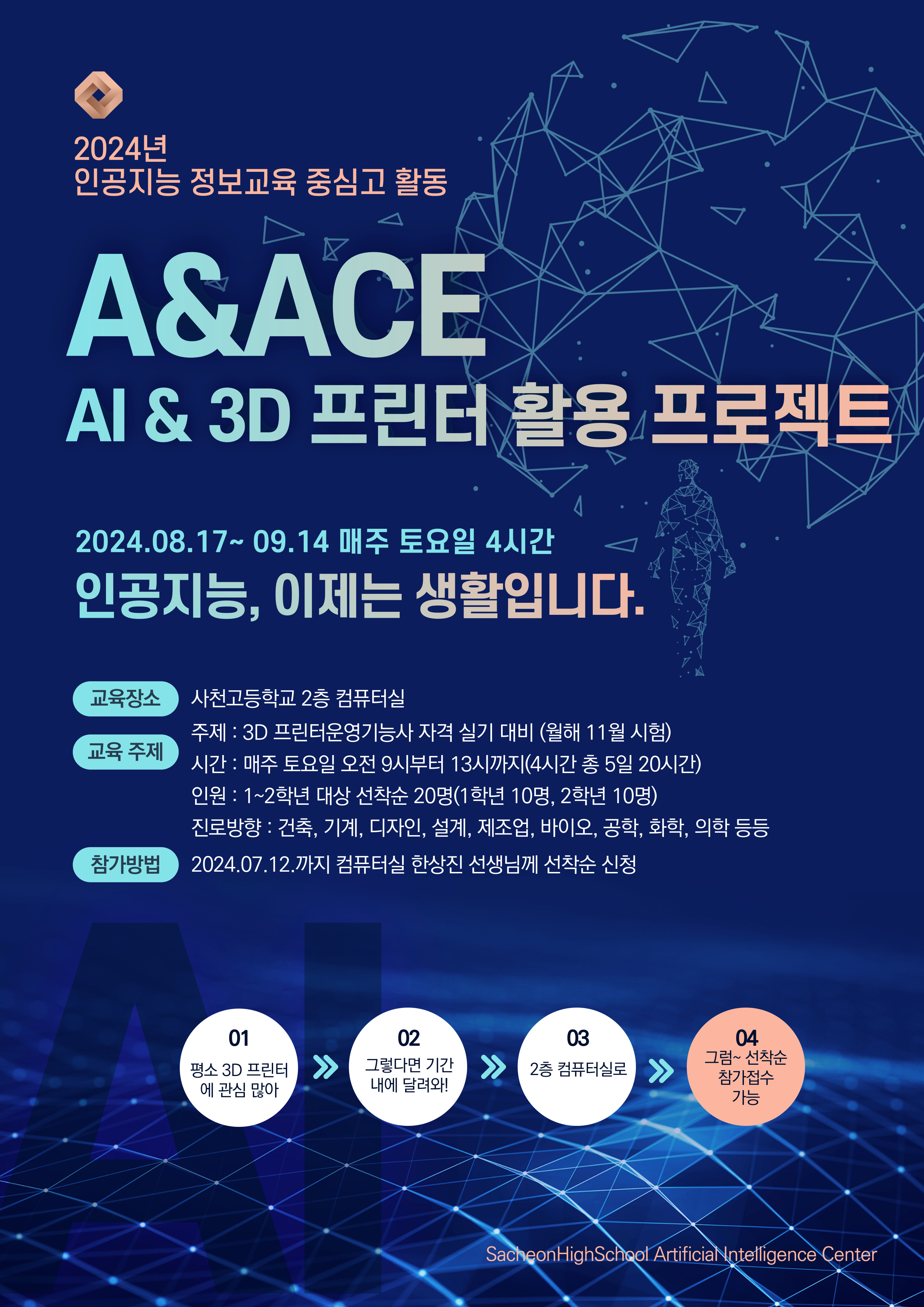 2024년 AI.정보 교육 활동이 하나로 AI & 3D 프린터 활용 프로젝트를 실시합니다.